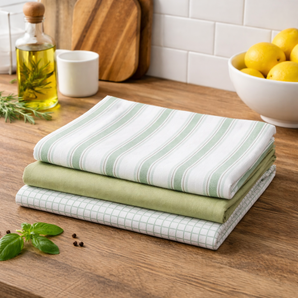 WOVEN BLUE/GREEN TEATOWEL 3PK