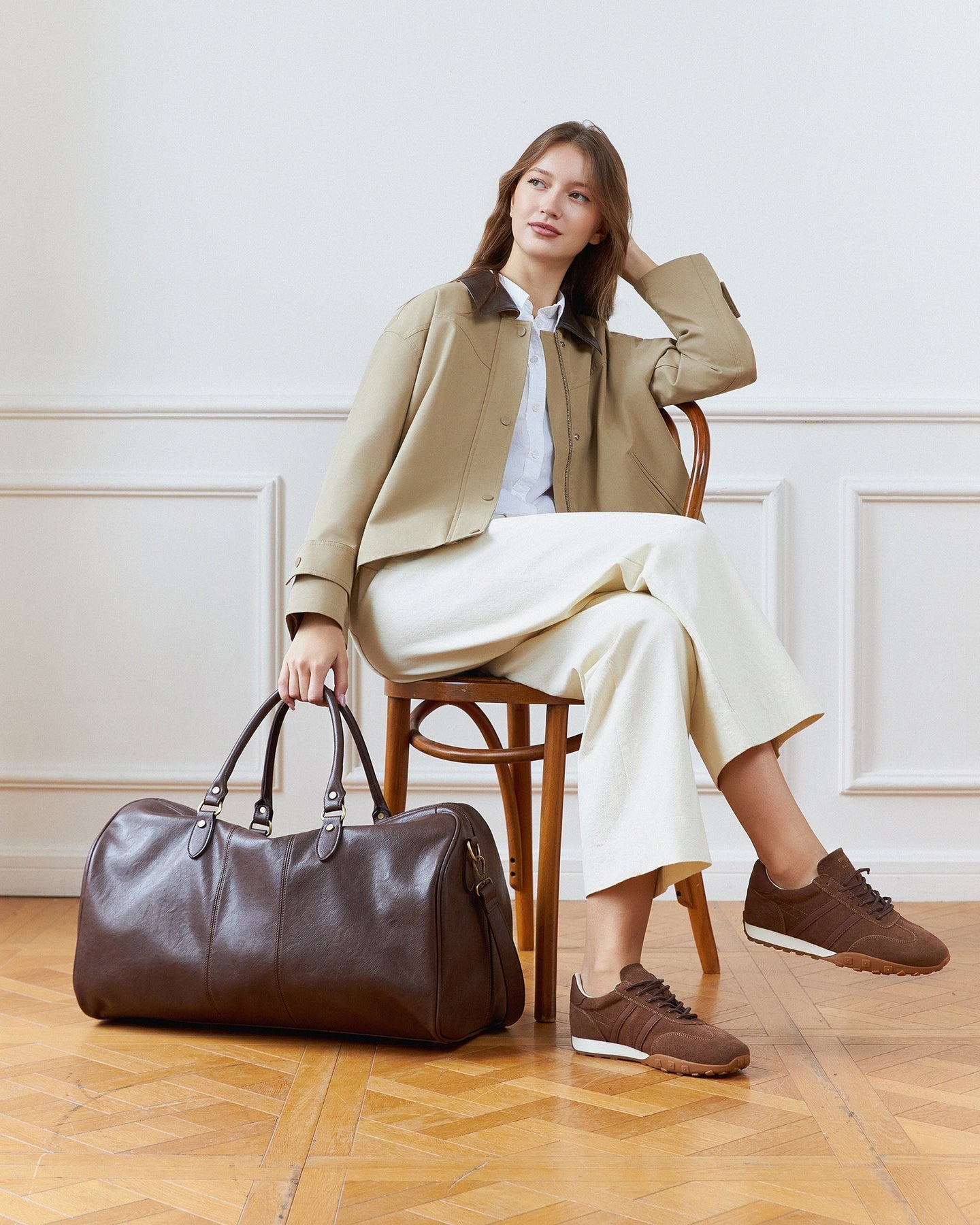 Crafted for weekend wanderers and last-minute travellers, the Cooper Chocolate Travel Bag blends style with purpose-led ease. Made from smooth vegan leather and finished with antique gold hardware, Cooper Chocolate fits a 16-inch laptop along with everything you like to pack “just in case.” Designed with the convenience of carry on luggage and the relaxed silhouette of a duffle, she offers thoughtful organisation through internal zip and slip pockets, plus a back zip pocket for quick-access essentials. Dual handles and an adjustable strap mirror the versatility of a men’s travel bag with shoulder strap, giving you multiple ways to carry as the journey unfolds. Finished with a secure top zip and protective feet, Cooper Chocolate is ready for airport terminals, long drives, and every escape in between.