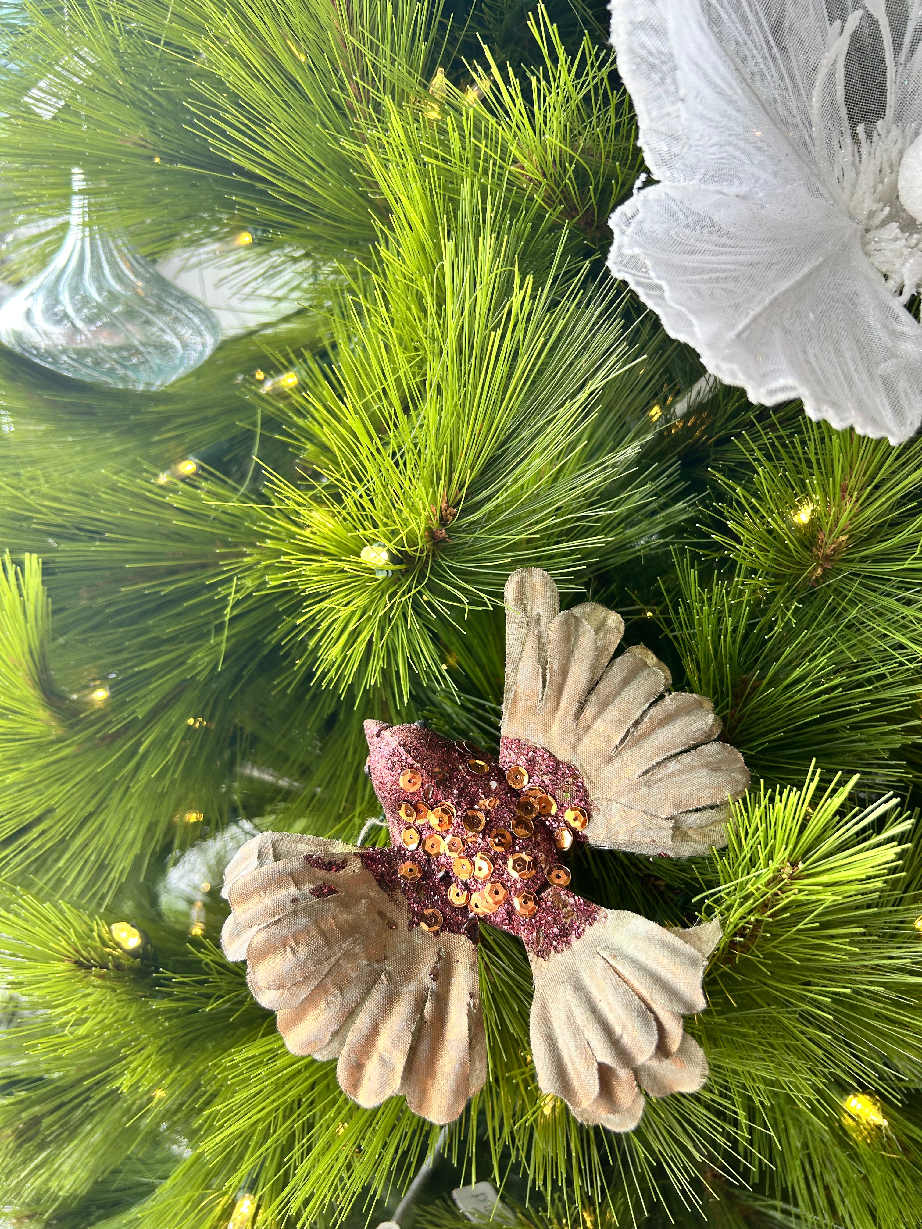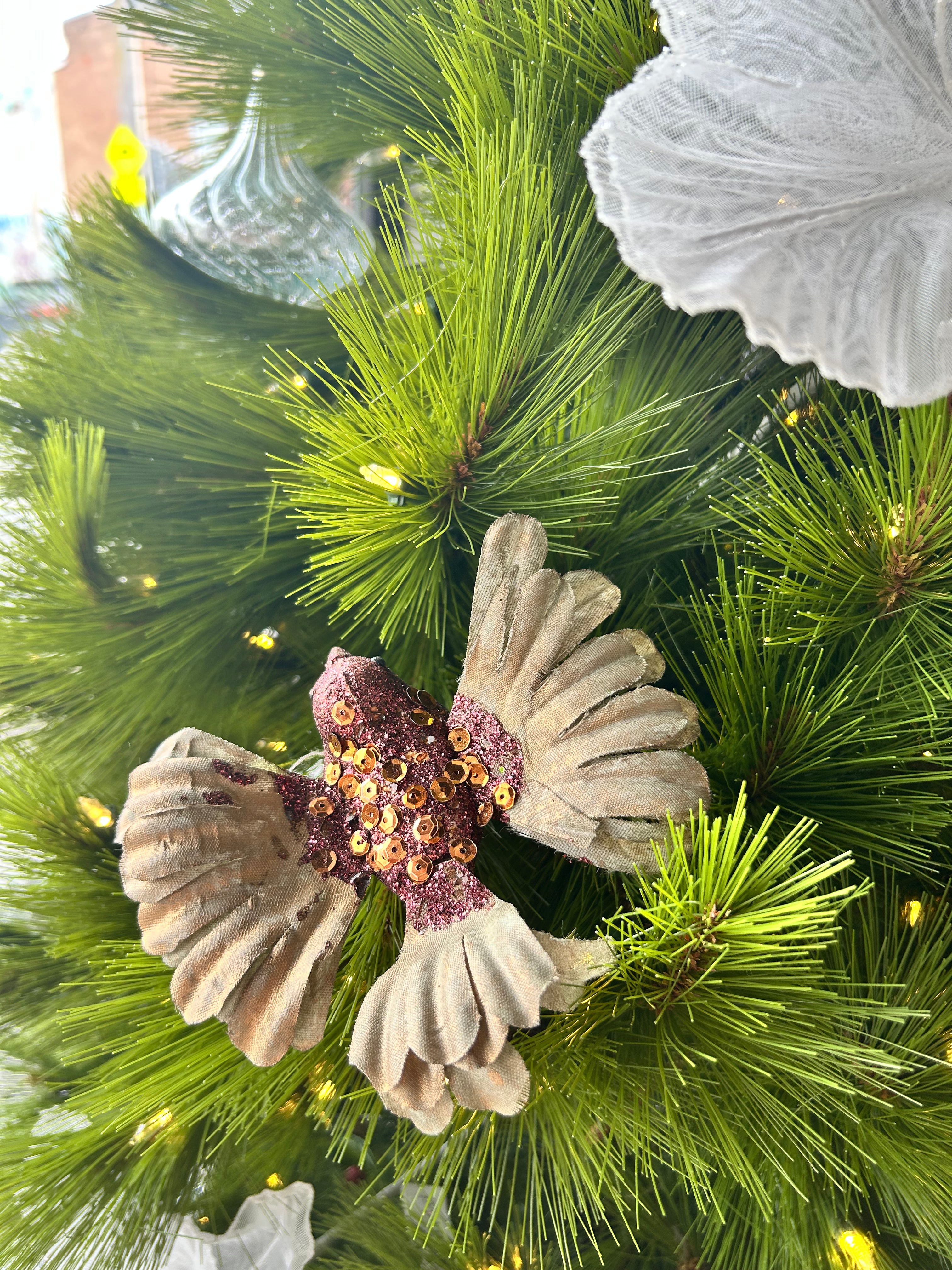 Brandy Sequin Bird with Clip Bronze features rich warm seasonal tones