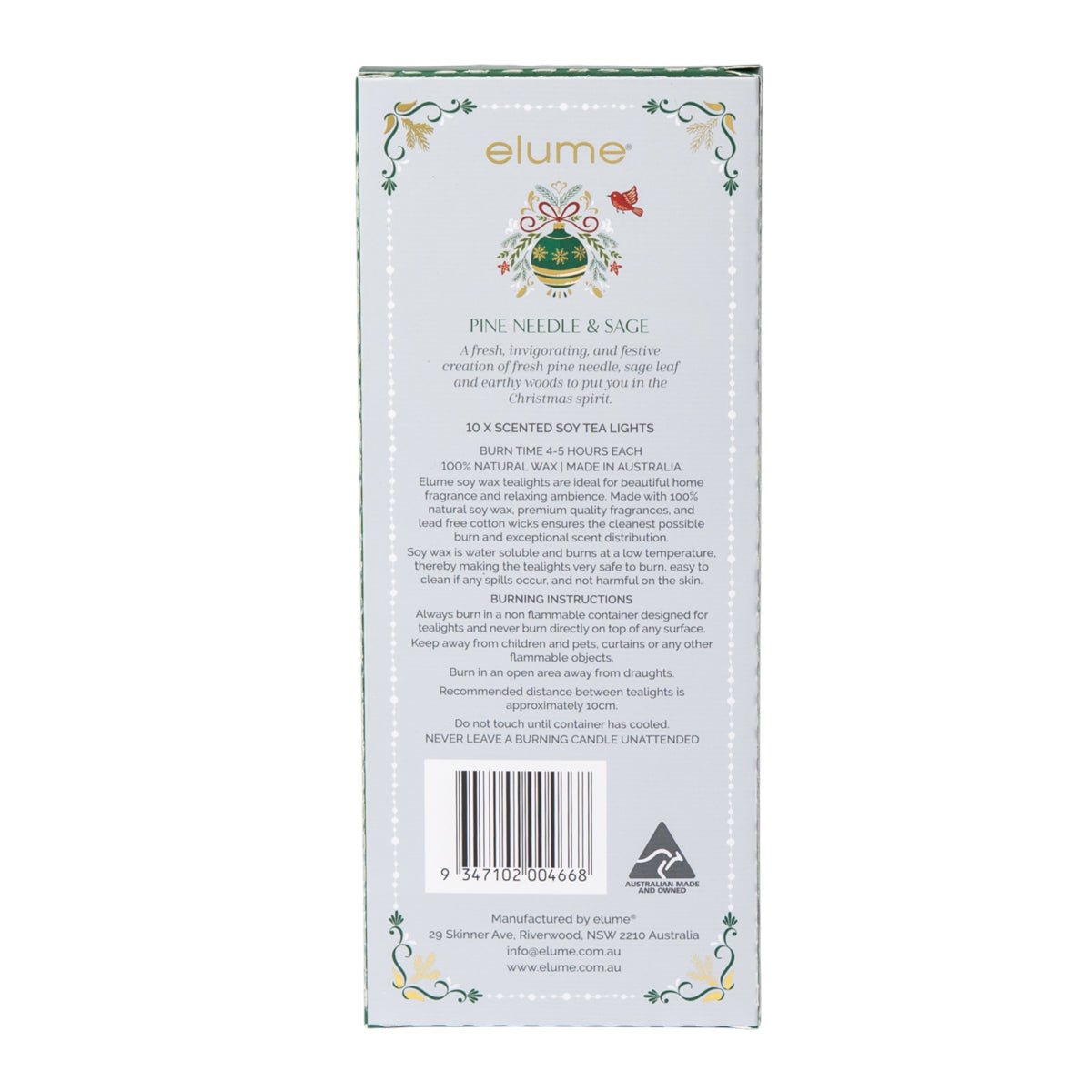 Tealights are perfect for perfuming your living space with your desired scents. They also offer versatility as you can change scents from one day to the next, letting you create the right ambience for the moment. Crafted from soy wax with a lead-free wick, you will enjoy 5+ hours of sumptuous burn time with each tealight. This Christmas Pine Needle & Sage Tealight pack comes with 10 tealights.