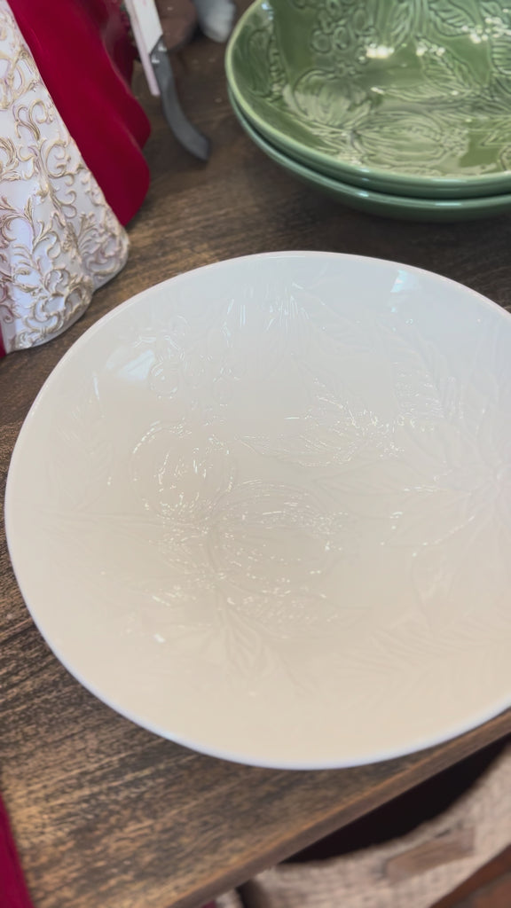 Add a touch of festive elegance to your table with the Poinsettia White Engraved Bowl. Made from smooth white ceramic, this shallow bowl features a delicate poinsettia engraving that captures the holiday spirit while offering a stylish and versatile option for serving your favorite dishes.