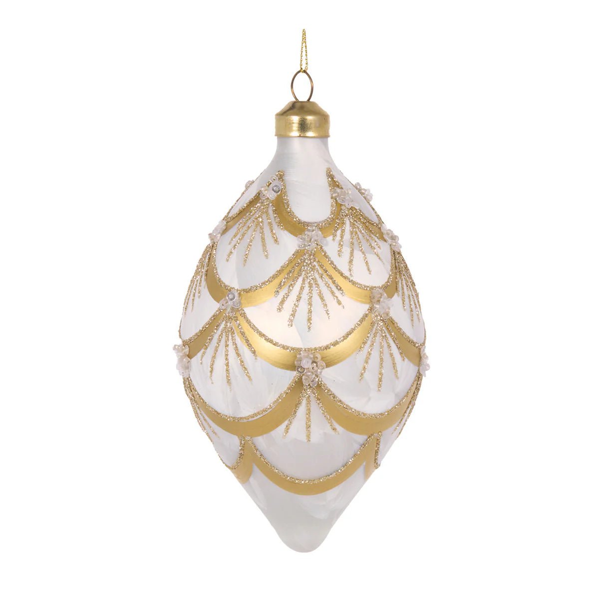 WHITE AND GOLD DECO SCALLOPED DROP BAUBLE