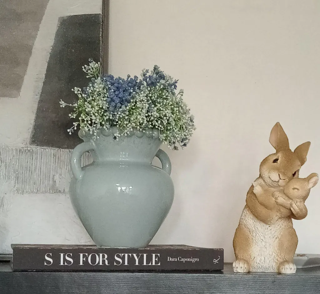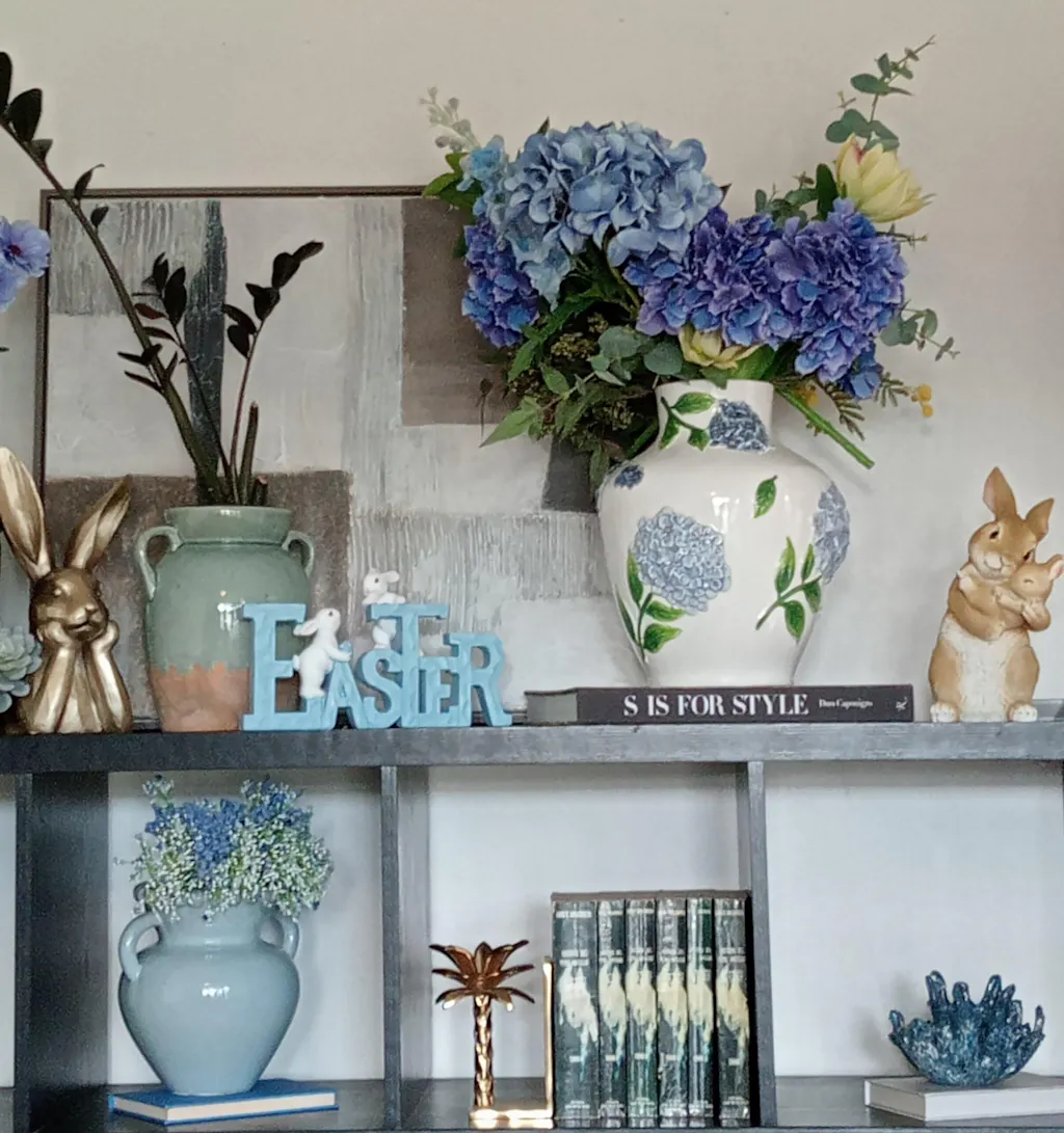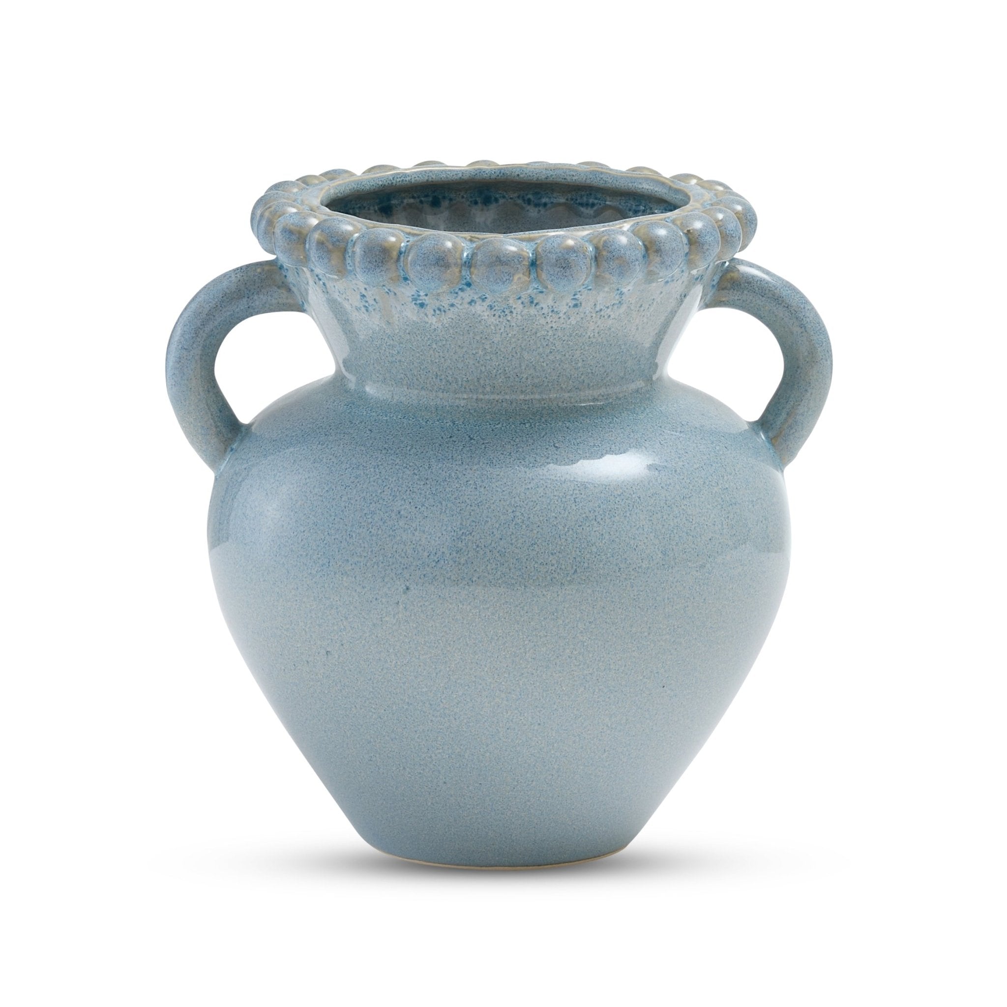 Contemporary vase with bobbled rim and a blue reactive glaze finish.