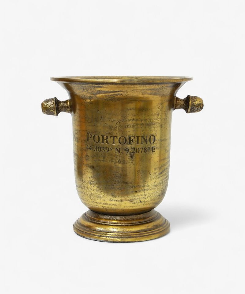 Entertain in style with the Portofino Champagne Bucket. Featuring a stunning antique gold finish, it adds a touch of elegance to any gathering, from cosy dinners to festive celebrations. This wine bucket not only keeps your beverages perfectly chilled but also serves as a beautiful centrepiece for your bar or dining setup. Available in two sizes.