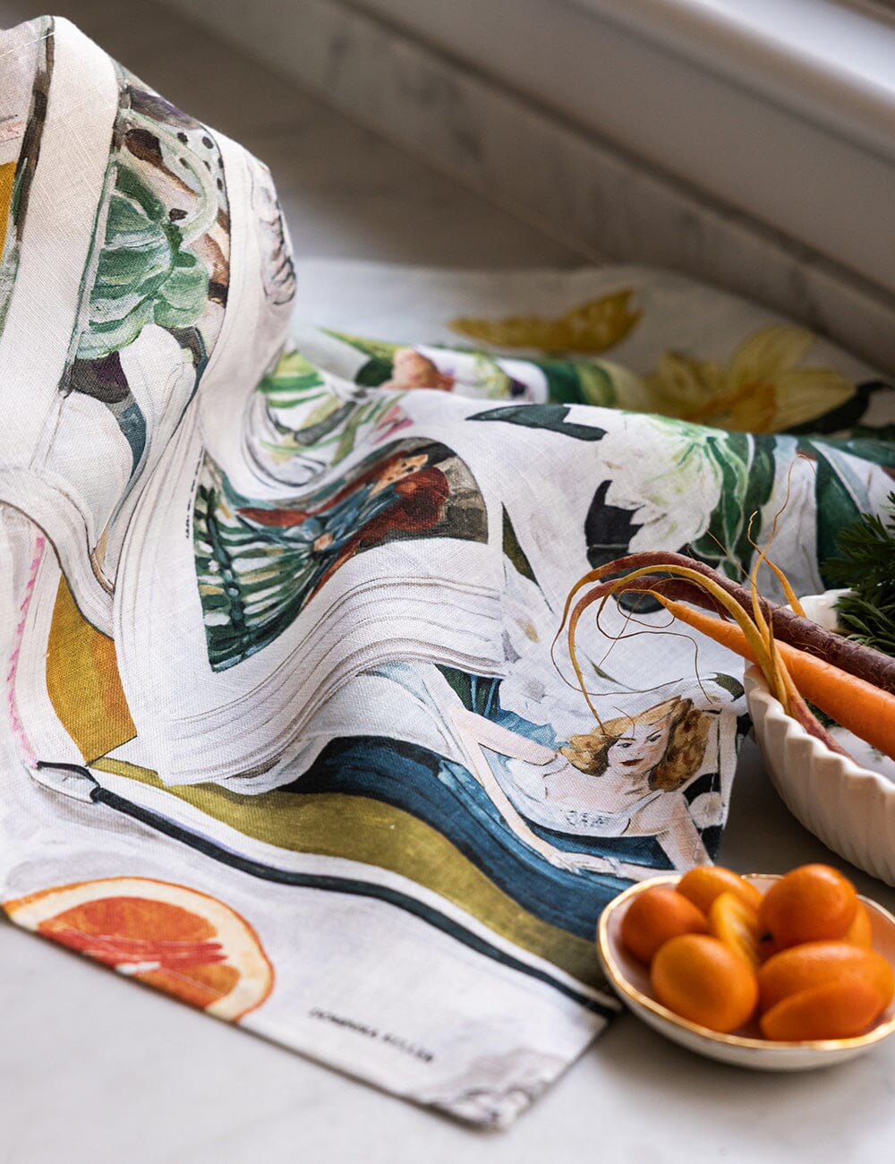 Artwork by Dominika Keller and printed on 100% Linen Tea Towel. Supplied folded with a gold foil printed removable bellyband.