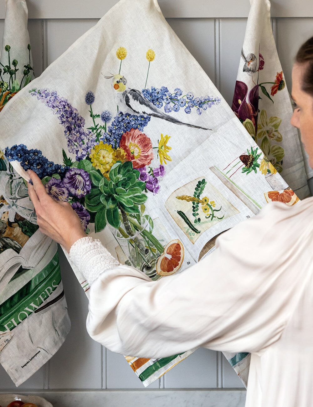Artwork by Dominika Keller and printed on 100% Linen Tea Towel. Supplied folded with a gold foil printed removable bellyband.