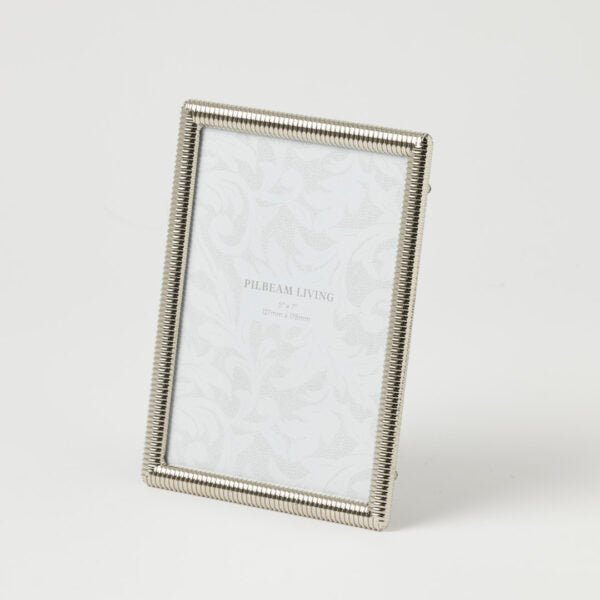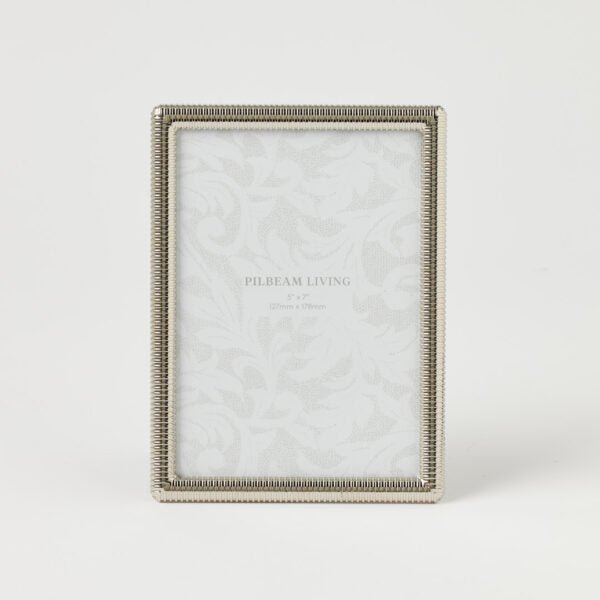 The Pilbeam Living Aerin 5 x 7″ Photo Frame – Silver features a finely textured border with a sleek silver finish for a timeless, refined look. A beautiful way to highlight a cherished photo on a shelf, mantle or tabletop.