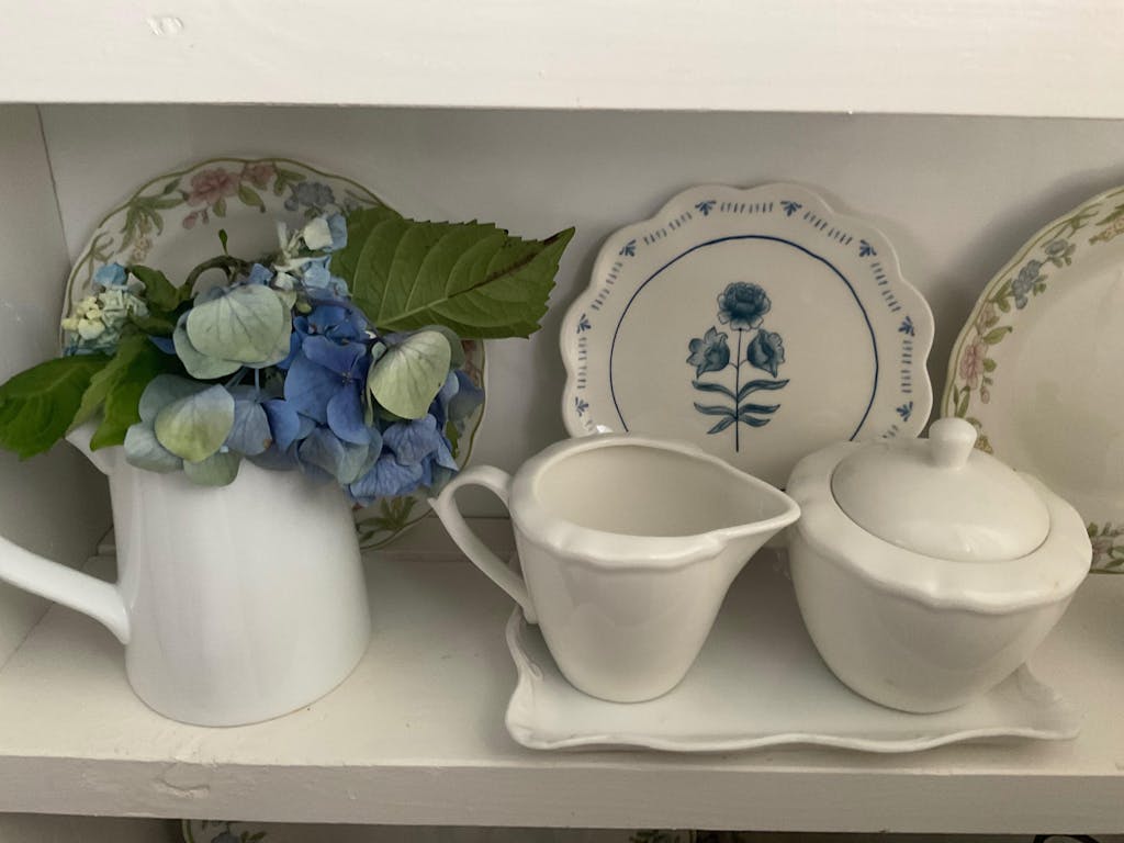 This stunning hydrangea tray and bowl set looks exquisite on my barhroom bench holding my candle and habdwash ♥️