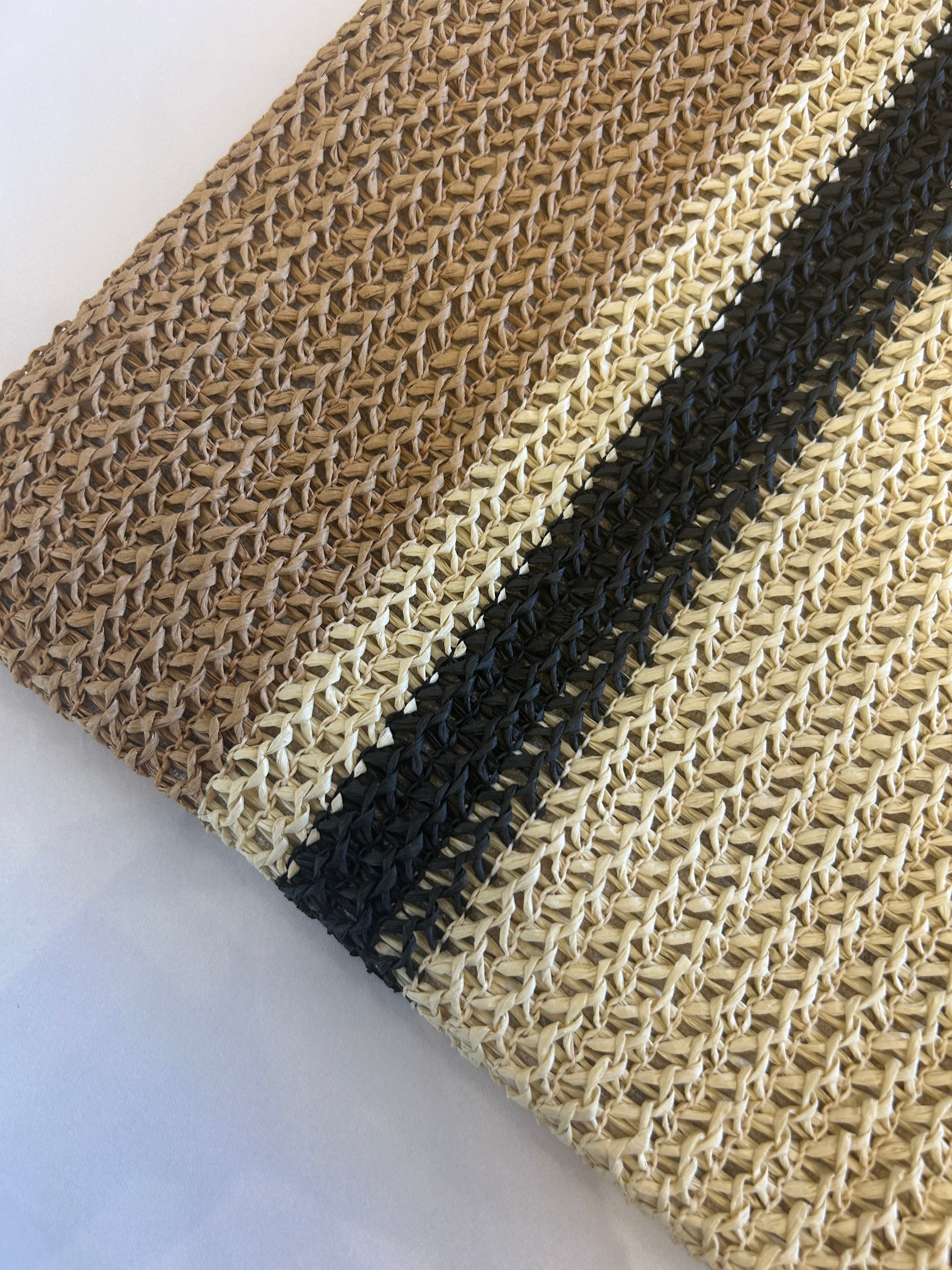 Elevate your everyday carry with the Sol Woven Clutch, a versatile accessory that seamlessly transitions from day to night. Crafted from quality woven material, this clutch features a timeless natural and navy-black stripe design that complements any wardrobe. Perfect for holding essentials while maintaining an effortlessly chic aesthetic, it's the practical piece you'll reach for again and again. Whether you're heading to the office or out for the evening, this neutral-toned clutch pairs beautifully with any outfit.